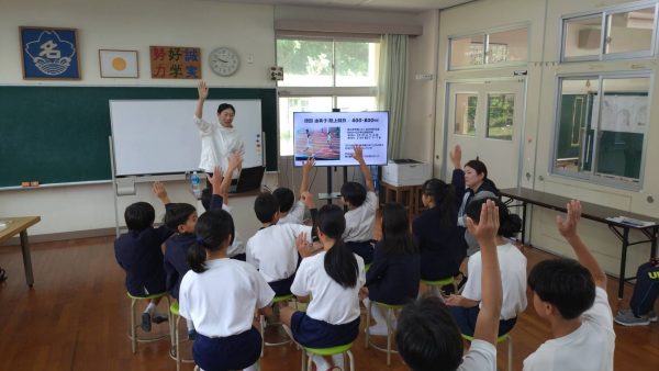 現在は、『日本の宝(子供たち)のお手伝いをしたい!』との想いから、コーチングやご自身の経験を伝える活動をしている徳田さん。名音小学校のみんなにも一つひとつ丁寧に伝えていました!