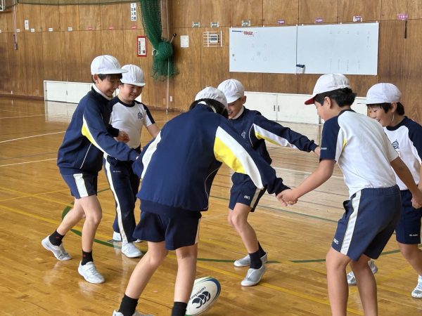 5年生を対象にラグビーボールを使った様々なゲームで盛り上がりました!