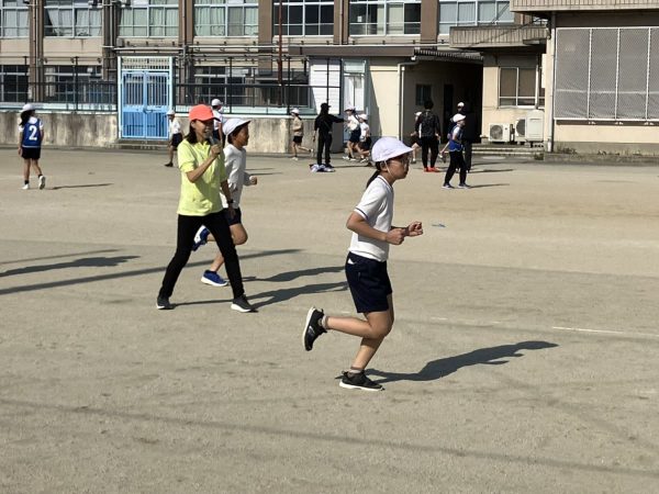 実技は、準備運動から始まり、千葉さんからの“姿勢が大事”“腕の振りを意識”のアドバイスの元、練習に取り組みました。続いて早歩き、脚を大きく上げる、大股で走る、けんけんぱなどの正しい走り方の基礎となるメニューを紹介し、最後は1キロ走に挑戦!千葉さんとの練習を思い出しながら、みんな最後まで走り切りました!