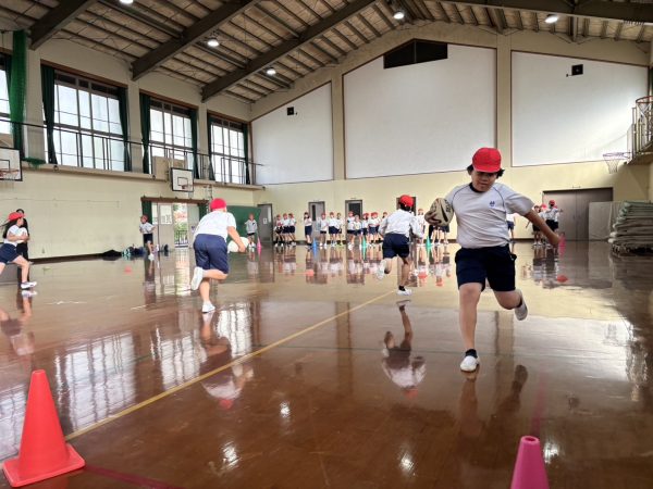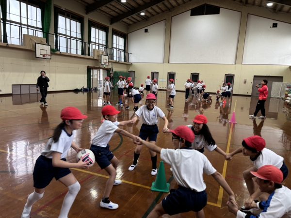 運動能力の個人差ではなく、チームワークが重要なゲームですが、児童の皆さんはすぐに理解したのかチームで協力してネズミ役を守り、それを搔い潜ろうと鬼役の児童も切り返しやフェイントを混ぜた攻防をくりひろげていました。