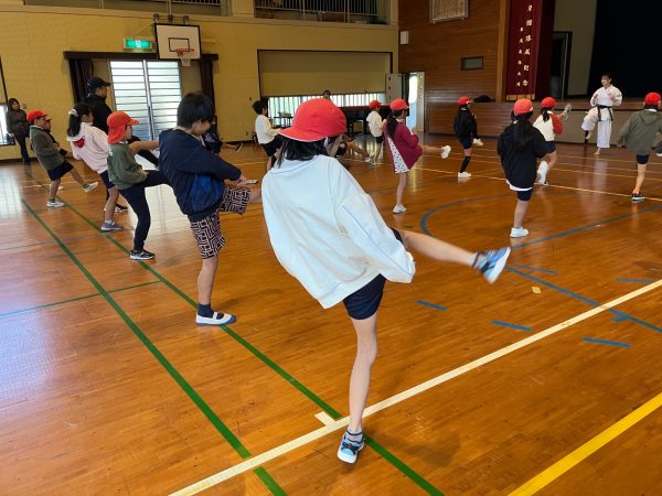 授業は自己紹介と講話から始まりました。19年間空手を続けてきてご自身の体験をもとに徳積み(自分に恥じない行動をする)や成功への近道など、児童たちがこれから実際に体験した時にどの様に考えたら良いかお話をして頂きました。児童たちは大内さんのお話を真剣に受け止めている様子でした。