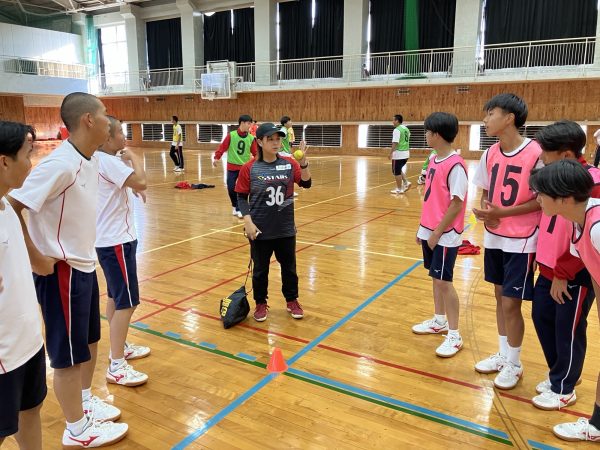 体育コース専攻の高校生に、スポーツの楽しさとチャレンジすることの大切さを伝えました。