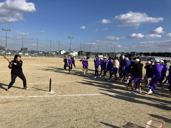 実技ではウォーミングアップから始まりキャッチボール・バッティングと試合に向けて練習していきます。