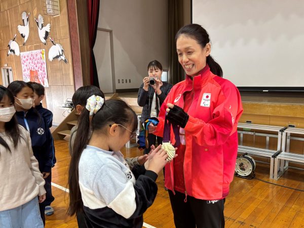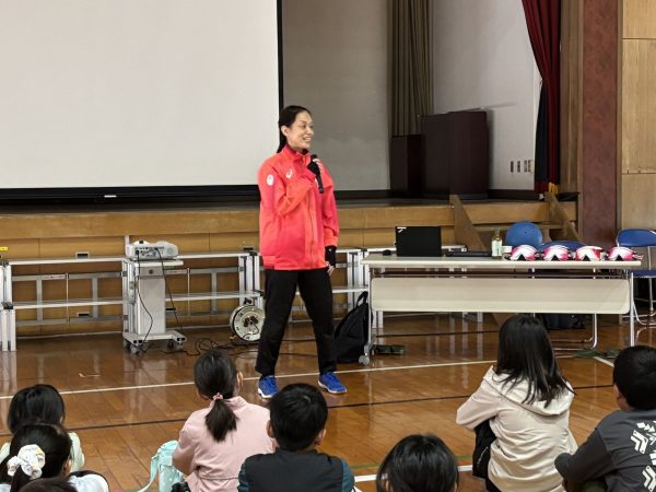 最後に、「難しかったけどゴールできたのが気持ちよかった」などなど、たくさんの児童が小宮さんに授業の感想を伝えてくれ、小宮さんからも「元気で明るく、いろんなことに楽しんで挑戦してください」とメッセージを送りました。