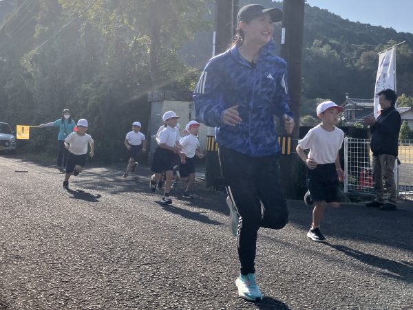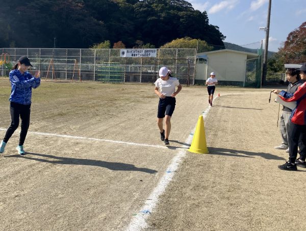 学校のマラソン記録会に参加。全校生徒に短距離と長距離の走り方の違いを伝えた。