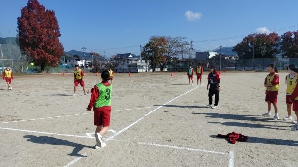 ウォーミングアップ、ルール説明の後、4チームに分かれて試合開始。