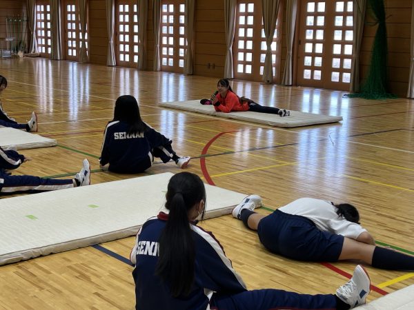 準備体操を終えるとすぐにマット運動に入っていきます。