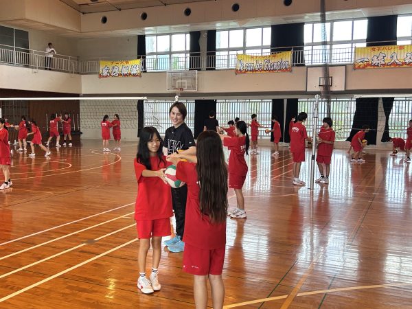 元Vリーガーの大山未希さんが沖縄県・うるま市立高江洲中学校にアスリーチ!