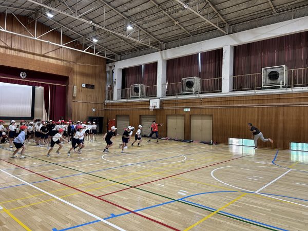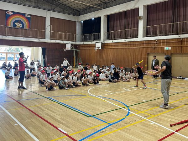 元プロ野球選手とのキャッチボール体験、サイン入りユニホームじゃんけん大会、休み時間に全員でドッジボールなどイベント満載の授業でした。