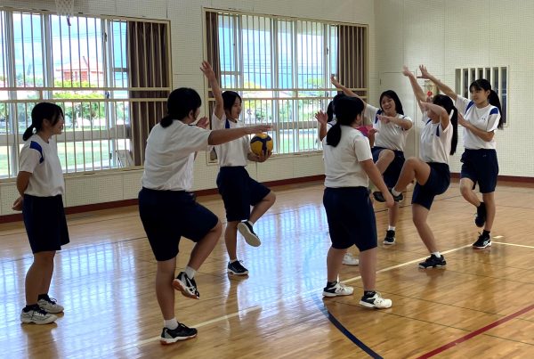 試合形式のゲームでは、チームワーク良く声を掛け合い、ポイントを取ると思いっきり喜び、コミュニケーションの重要性をあらためて認識することができました。