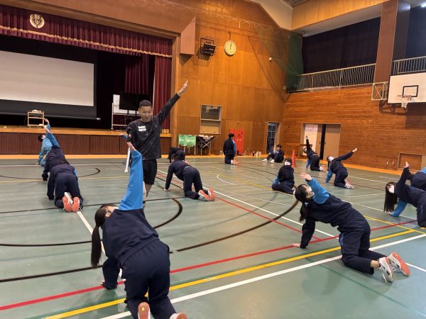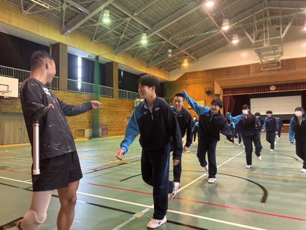 全校生徒に多様性の意味と挑戦することを恐れないでほしい事をお話しし、実技授業では3年生の皆さんと楽しみながら一歩深い身体の使い方を授業しました。