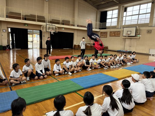 そして授業最後は杉原さんの技の披露。世界トップレベルの大技に体育館は大盛り上がり!みんなの目がキラキラ輝いていました!