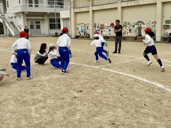 最後はトラックを使って紅白リレー対決!大きな応援の声がグラウンドいっぱいに響いていました!