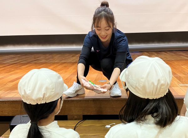 今回は、フィギュアスケート元日本代表、アジア選手権2位の加藤利緒菜さんが、大阪府・和泉市立鶴山台北小学校にアスリーチ!