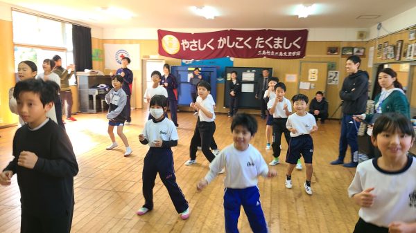 全校の小中学生20名に「体を動かすことの大切さ」を伝え、心と心の交流をしました。