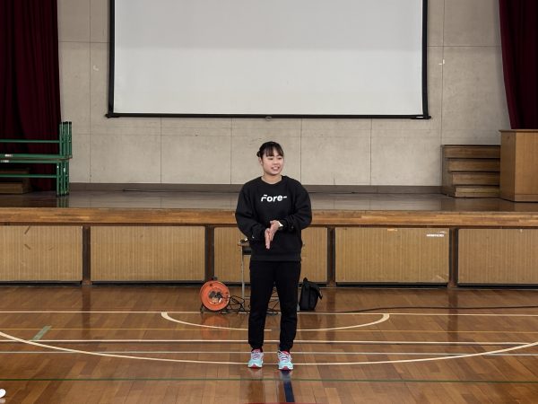 夢に向かってあきらめずに挑戦した結果オリンピックに出場できたといいます。児童たちへ、あきらめずに何ごとにも挑戦してほしいとエールを送ってくれました。