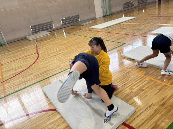 前転、後転、ロンダートなど、たくさんの技に挑戦していきました。宮川さんのお手本と教わったコツを意識しながら挑戦!宮川さんのアドバイスで、普段は回ることが苦手でなかなか成功しなかった児童も成功を連発!先生たちもびっくりしていました!どの技にも必死に取り組む児童たちのかっこいい姿が見られました!