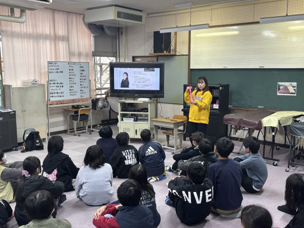 最初は今までの経歴や競技を始めたきっかけを話してくれました。現役時代の演技の映像が流れると児童たちからは歓声が上がりました。その後は体操競技のルールや技の種類説明や、大きな大会で採点をできる資格を持つ宮川さんから採点基準など体操についてたくさんのことを学びました。すっかり体操に興味津々な児童たちからはたくさんの質問が飛びました!