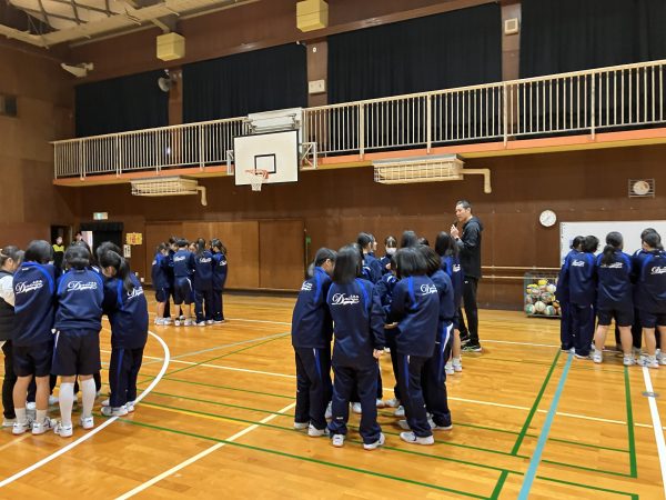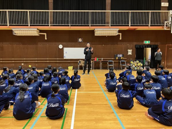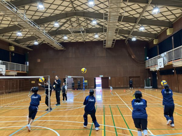 バレーボールを通して、目標を持つことの大切さと身体を動かすことの楽しさを伝えました。