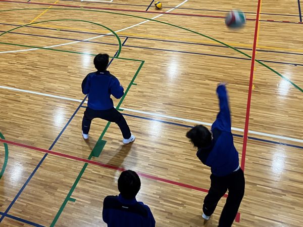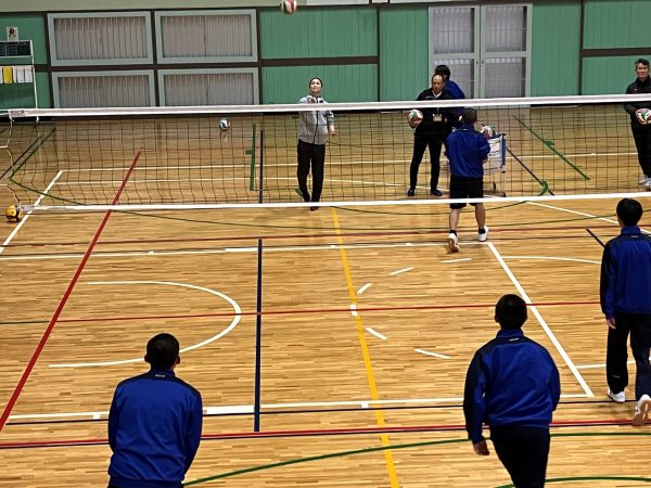 その後もサーブ、サーブレシーブ、ふたつのボールを使ったパスゲームと、生徒たちは元気よく目の前のことにチャレンジし続けました。