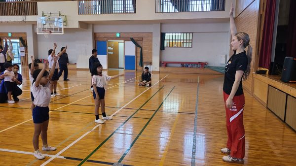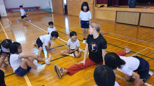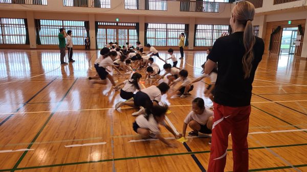 小学1年生から6年生までの全校40名に体を動かす楽しさを伝えました。