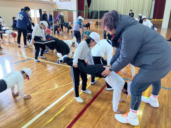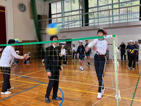 1年生~6年生、全校児童が身体の使い方・体幹トレーニング、バレーボールにチャレンジしました。