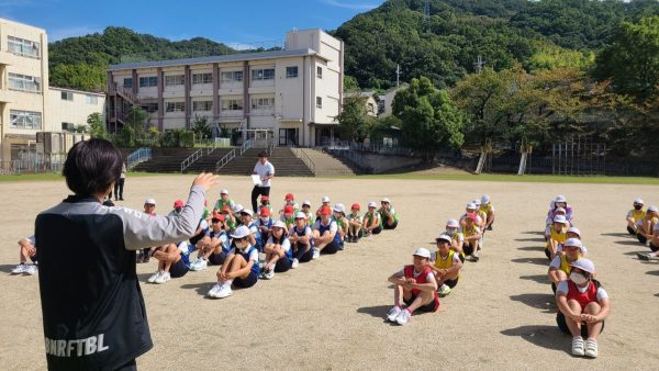 岩本さんが授業を行ったのは、大阪・天王寺から電車で20分ほど南東の距離に位置する柏原市立堅下小学校。参加したのは、元気いっぱいの6年生です。授業では、サッカーに限らず、どんなスポーツでも自分の思った通りに体を動かせることが大切、と全身を動かすトレーニングに取り組みました。